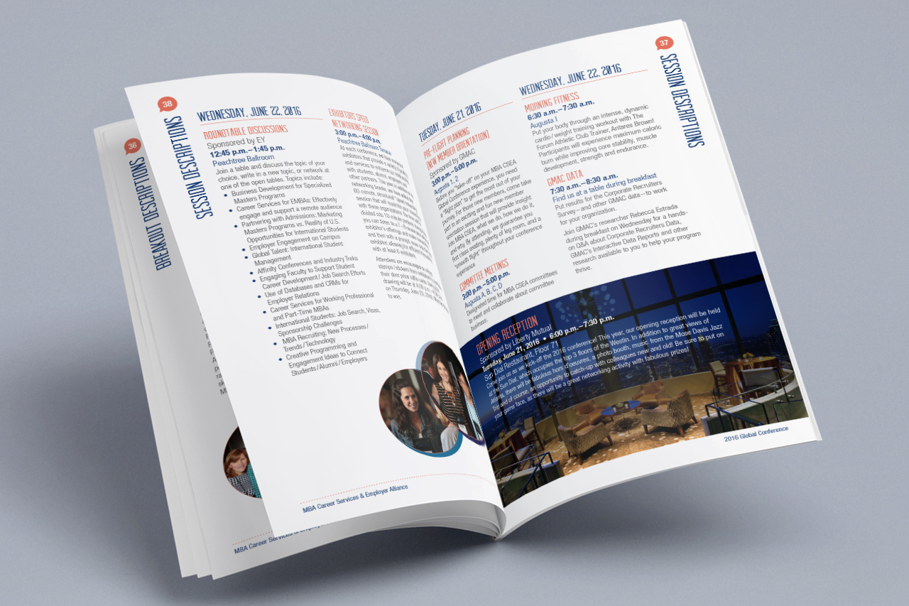 Every year, the MBA Career Services and Employer Alliance hosts three different meetings around the world. We were asked to design the look and feel for their Global meeting in Atlanta, Georgia, their European meeting in Dublin, Ireland, and their Asian meeting in Singapore. By incorporating regional colors and images, we were able to bring an individual look to each meeting.