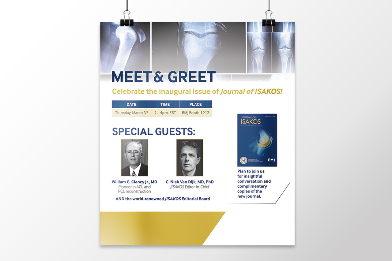 A highly-regarded publication deserves a recognizable brand, so we really put our heads together for the Journal of Joint Disorders & Orthopaedic Sports Medicine (JISAKOS) to deliver an iconic look. Regal gold and blue contrast each other pleasantly when paired with the stylistically minimal text layout. Overall, we developed a professional, classic design that JISAKOS can be proud of!